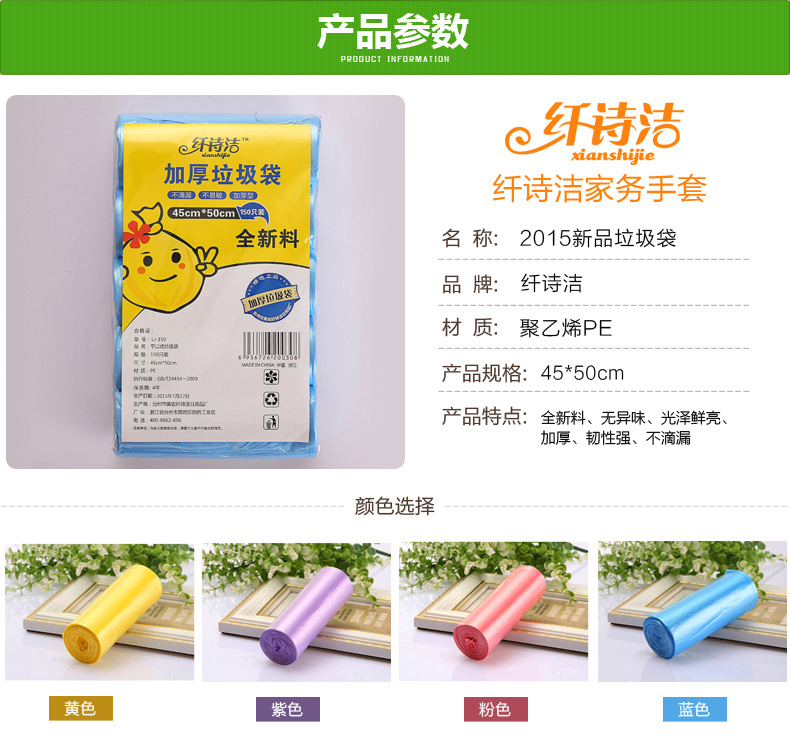 5卷100只加厚垃圾袋断点式彩色厨房卫生间家用塑料袋中大号